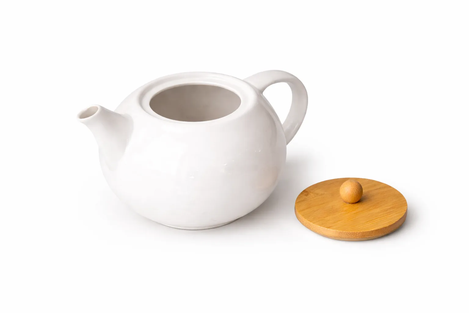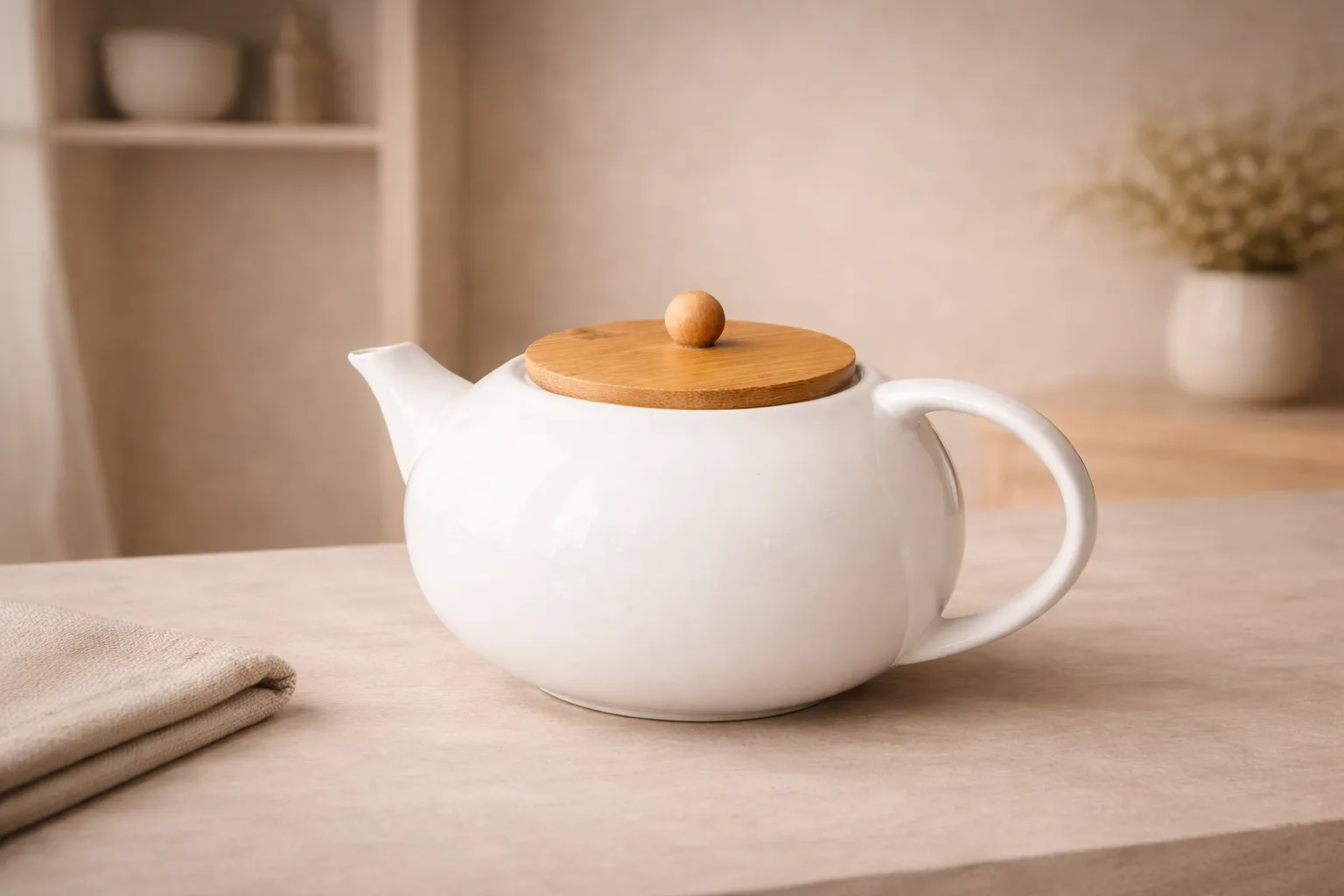 Producto: Tetera de Cerámica Blanca con Tapa de Bambú